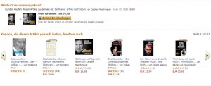 Amazon empfiehlt zu jedem Artikel andere Artikel, die von anderen Kunden mit dem betreffenden Artikel zusammen erworben wurden. Soweit, so bekannt. Sehen wir mal, was – ersichtlich aus der ersten Zeile der Empfehlungen – besonders oft zusammen mit dem gedruckten Buch erworben wird: Genau, das Hörbuch. Ich unterstelle mal, dass es bei Menschen wie Maschmeyer nicht an der Alphabetisierung scheitern soll, das Buch selber zu lesen. Erfolgsmenschen wie Maschmeyer, sind halt dauernd unterwegs und so ein Hörbuch kann man auch während langer Autofahrten hören.